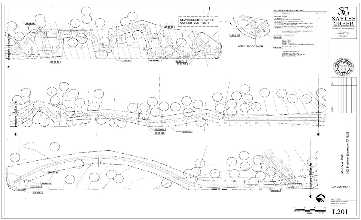 Mahncke Park Improvements was a public-sector project focused on enhancing an existing neighborhood park through targeted trail alignments, grading improvements, irrigation retrofits, and native planting. Serving as Senior Landscape Architect, responsibilities included design development, public meetings, construction documentation, and construction administration. The project required close coordination with City departments and adherence to COSA UDC, ADA, and environmental standards, while working within phased budgets and an actively used public space.